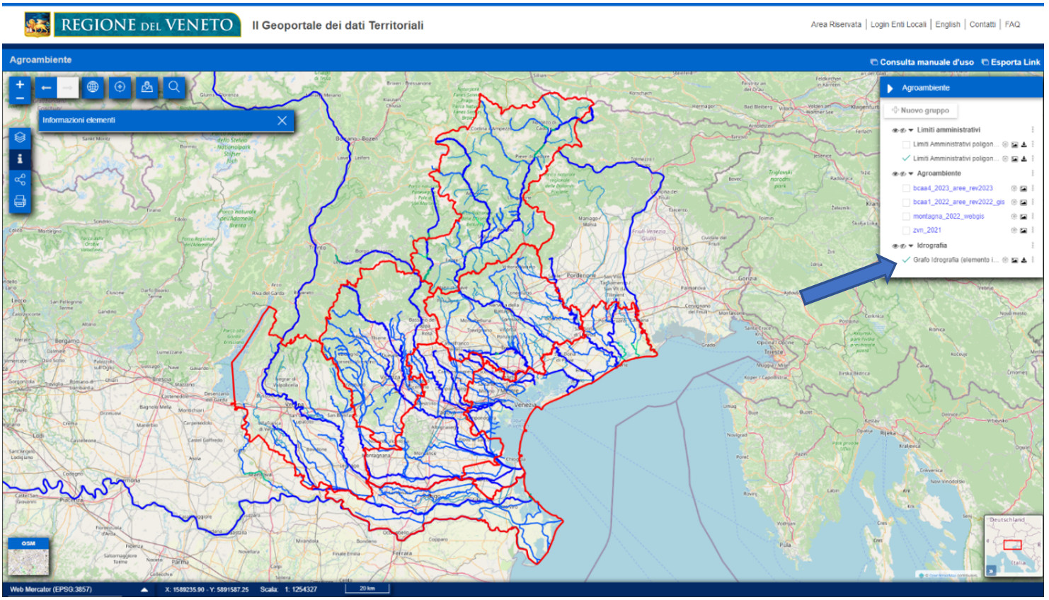 Al seguente LINK è possibile reperire tutte le informazioni utili per la visualizzazione del layer del grafo idrico e le funzionalità messe a disposizione.