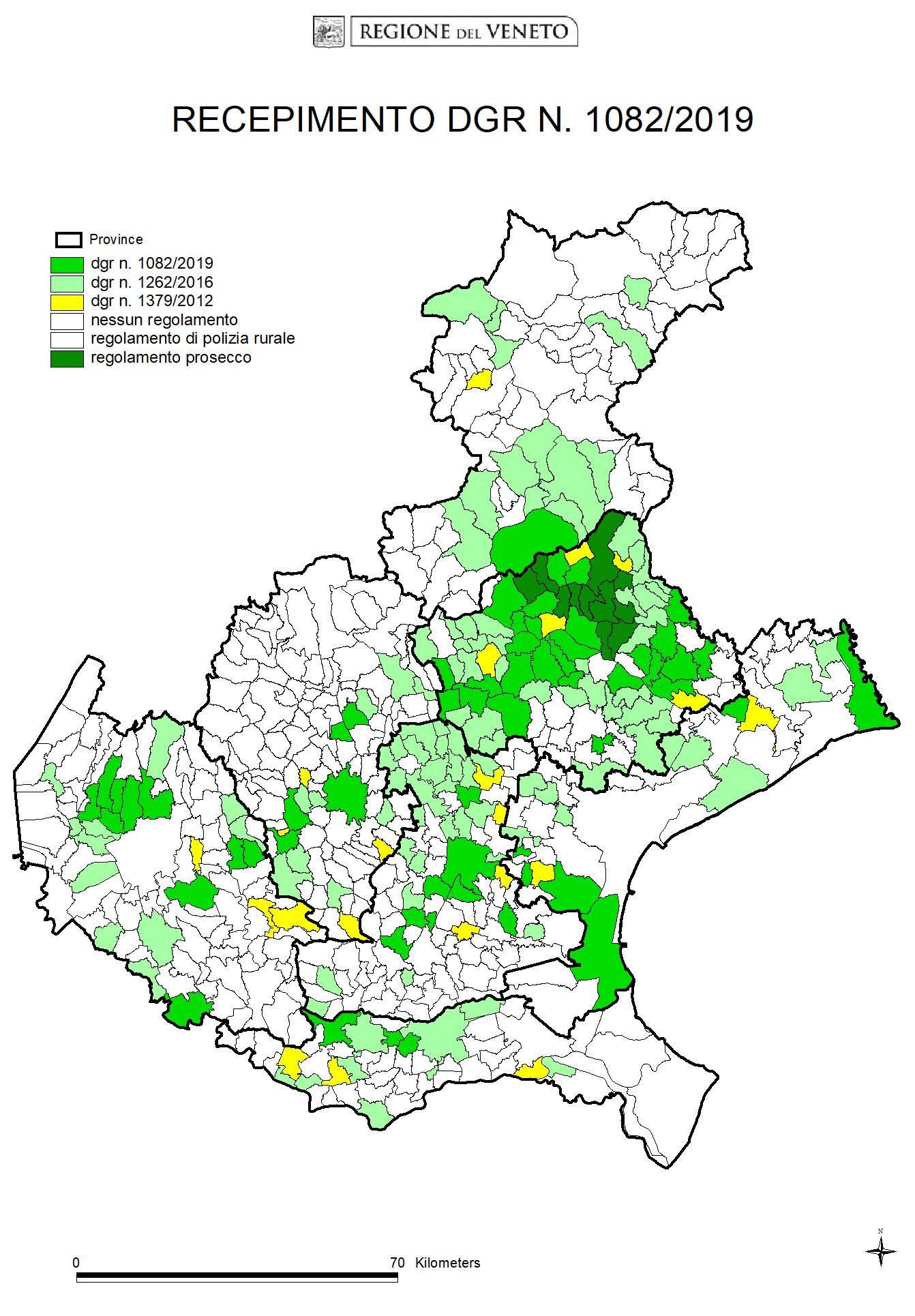 Alla luce del nuovo quadro normativo, con DGR n. 1082 del 30 luglio 2019, (BUR n. 97 del 27/08/2019) sono state riviste le precedenti disposizioni vigenti in Veneto (DGR n. 1262/2016) e sono stati approvati gli Indirizzi per un corretto impiego delle sostanze fitosanitarie (ALLEGATO A), la Proposta di Regolamento comunale/intercomunale sull’uso dei prodotti fitosanitari nelle aree frequentate dalla popolazione o da gruppi vulnerabili e nelle aree adiacenti ad esse (ALLEGATO B).