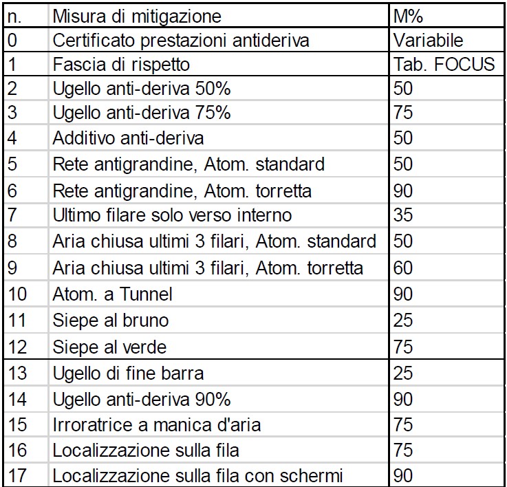 Elenco delle misure di mitigazione della deriva