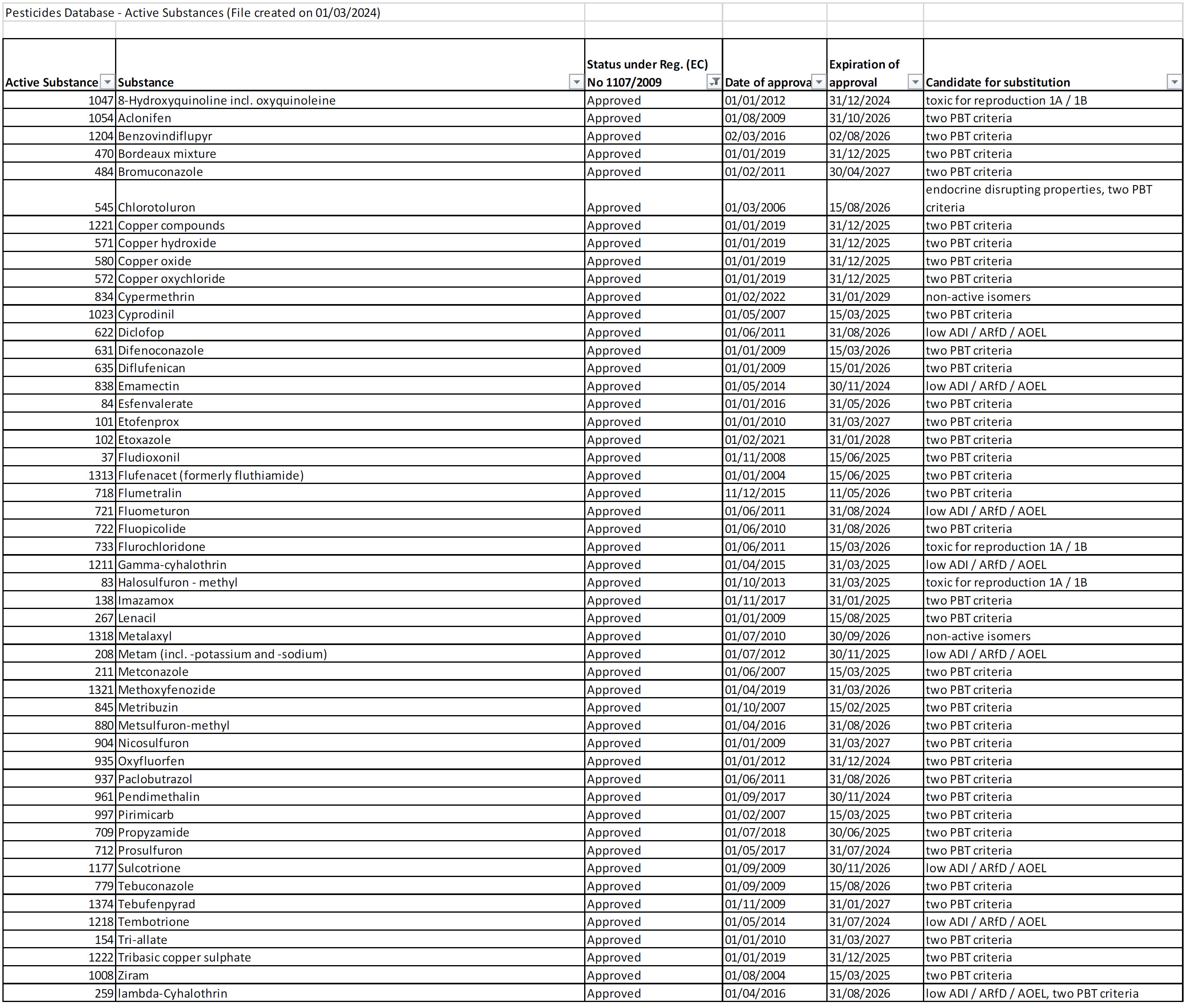 - EU Pesticide Database (database sostanze attive)