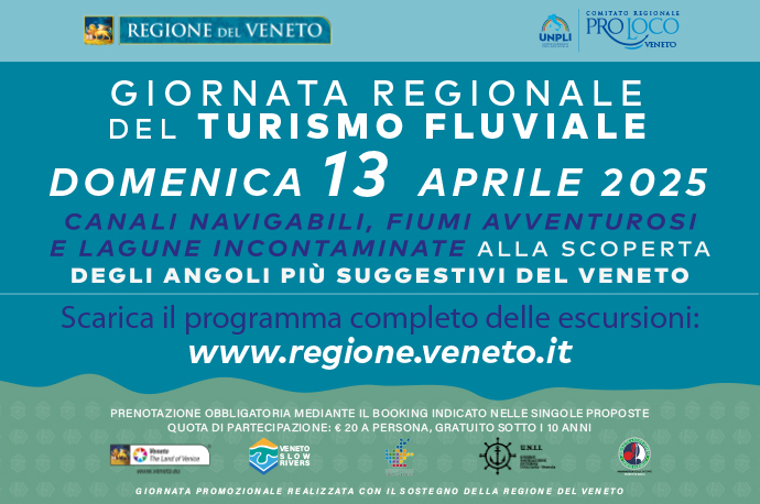 La Regione del Veneto in collaborazione con il Comitato Regionale Unpli Veneto invita a vivere gli angoli più suggestivi del territorio regionale per celebrare assieme la Giornata Regionale del Turismo Fluviale che si terrà domenica 13 aprile 2025.