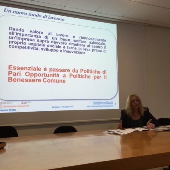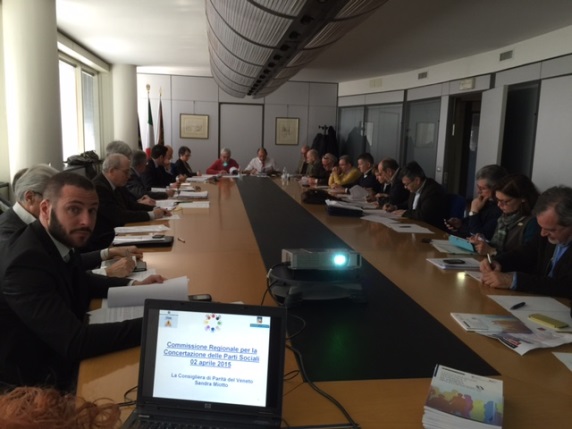 La Consigliera di Parità Sandra Miotto ha presentato in Commissione Regionale di Concertazione tra le Parti Sociali (CRCPS) il volume “L'occupazione maschile e femminile in Veneto 2015" che raccoglie i dati sull’occupazione delle aziende pubbliche e private venete. Mestre, via Ca’ Marcello 67.