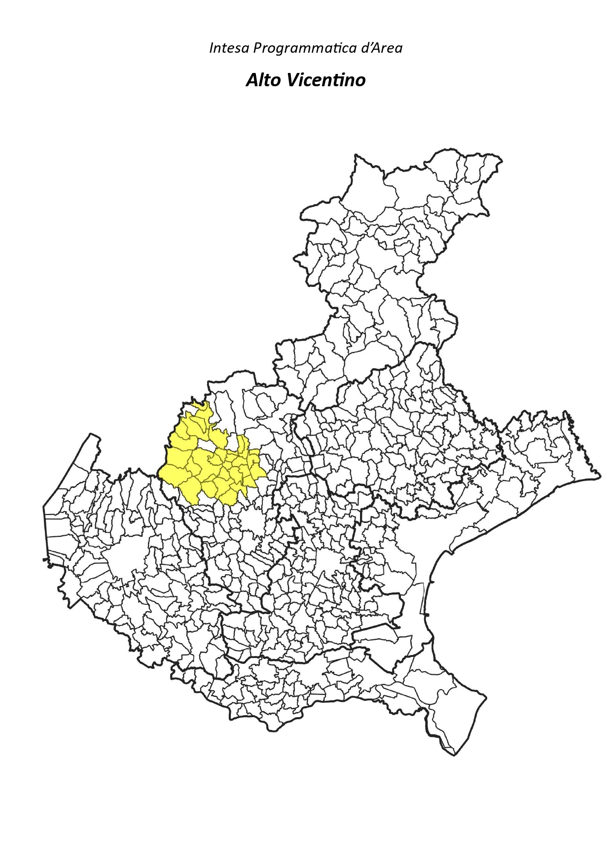 COMUNI: (n. 32) Arsiero, Breganze, Calvene, Carrè, Chiuppano, Cogollo del Cengio, Fara Vicentino, Isola Vicentina, Laghi, Lugo di Vicenza, Malo, Marano Vicentino, Monte di Malo, Montecchio Precalcino, Pedemonte, Piovene Rocchette, Posina, Recoaro Terme, Salcedo, Santorso, San Vito di Leguzzano, Sarcedo, Schio, Thiene, Tonezza del Cimone, Torrebelvicino, Valdagno, Valdastico, Valli del Pasubio, Villaverla, Zanè, Zugliano.