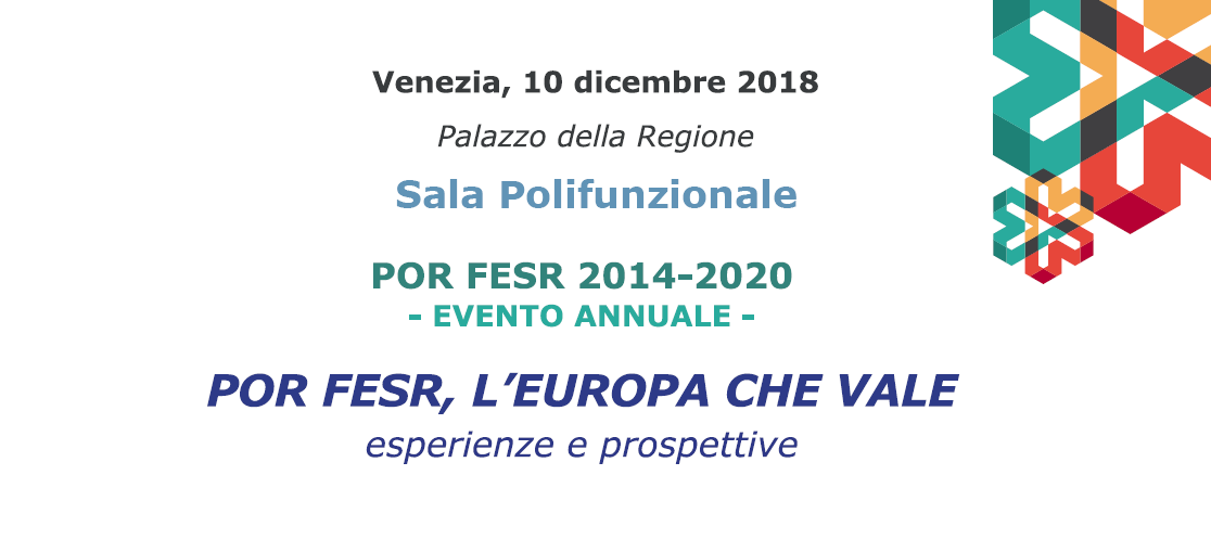 Il 10 dicembre si è tenuto a Venezia l’evento annuale 2018 del Programma Operativo Regionale del Fondo Europeo di Sviluppo Regionale, POR FESR 2014-2020, intitolato “L’Europa che vale: esperienze e prospettive”, a cui sono stati invitati i componenti del Tavolo di Partenariato.