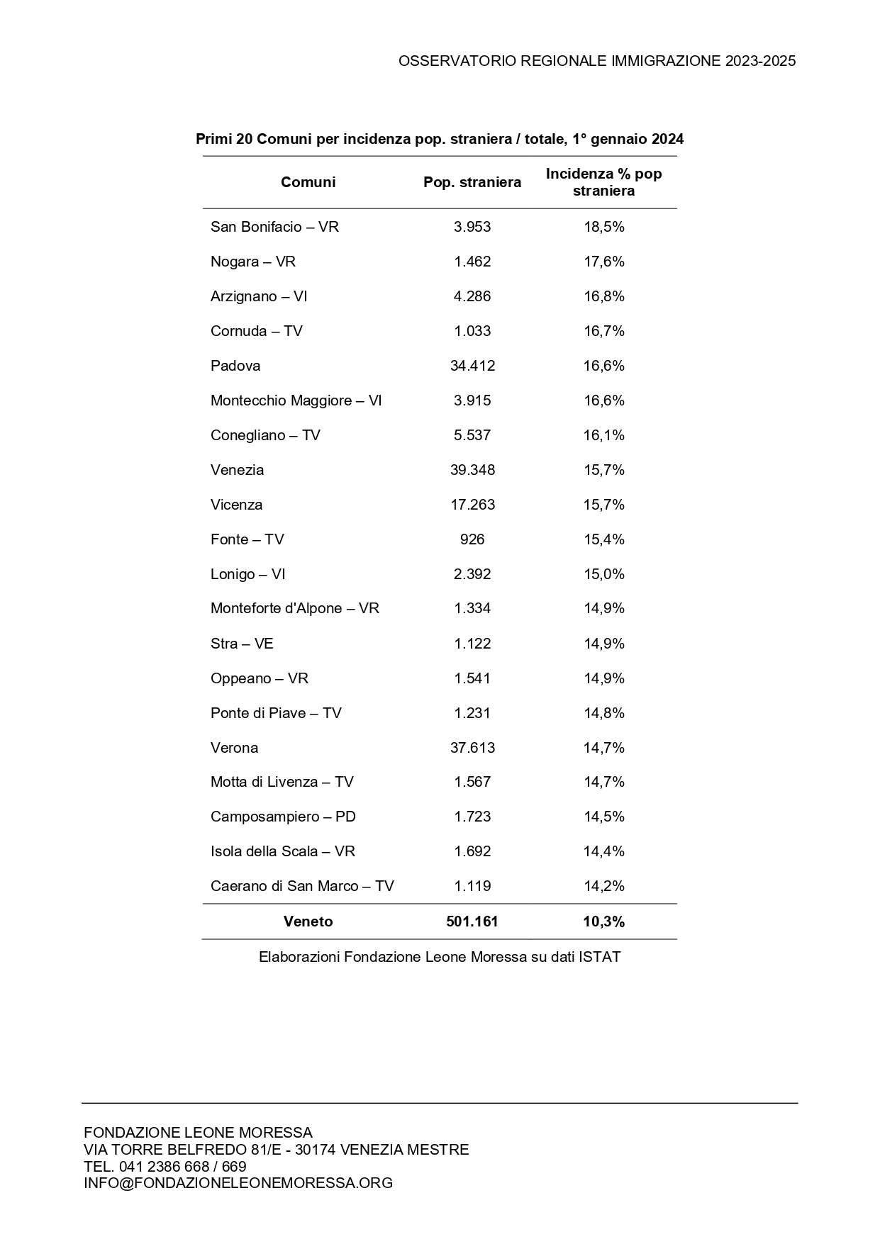 I comuni con più stranieri
