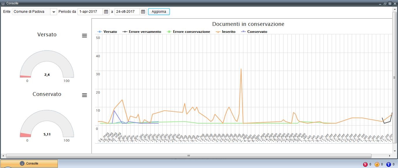 Per il monitoraggio del flusso di conferimento in conservazione delle unità documentali versate nell’Hub, la web consolle mette a disposizione una funzionalità apposita.