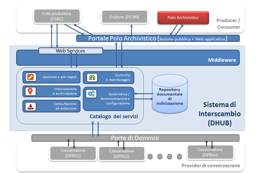 Il processo di conservazione della documentazione elettronica prodotta dagli Enti Produttori si basa sul framework applicativo denominato “Hub”.