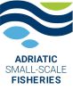 The trademark is both verbal and figurative and consists of two horizontal waves in blue chrome, surmounted on the left by a green crescent, with two underlying blue shapes recalling two fish of different sizes; below "Adriatic Small Scale Fisheries" is written in blue on three lines and in the Helvetica Bold Helvetica Light.