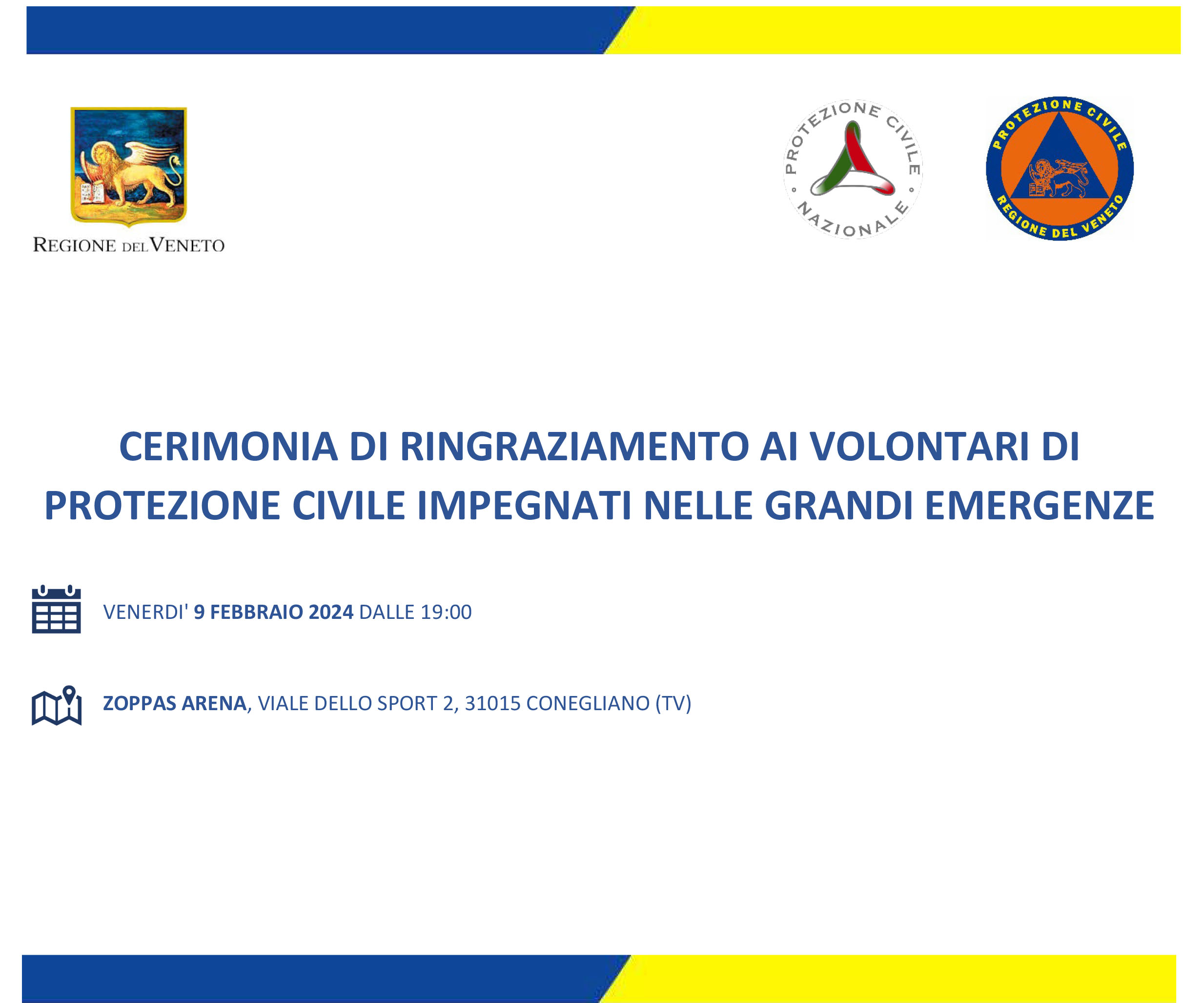 Venerdì 9 febbraio l'Assessore regionale alla Protezione Civile Gianpaolo Bottacin ringrazierà i volontari veneti impegnati nelle grandi Emergenze con una cerimonia presso la Zoppas Arena.