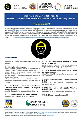 Il giorno 17 settembre 2021, ore 16.30-18 sarà possibile partecipare al webinar conclusivo del progetto PrEmT - Prevenzione Emotiva e Terremoti nella scuola primaria.
