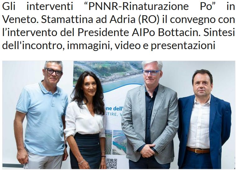 Presso il Comune di Adria (Ro), si è svolto un interessante convegno sulla rinaturazione del Fiume Po promosso da AIPO, e riferito agli interventi presso la Regione del Veneto ma che coinvolgono anche l'Emilia Romagna, la Lombardia e il Piemonte partner del progetto Natconnect2030.